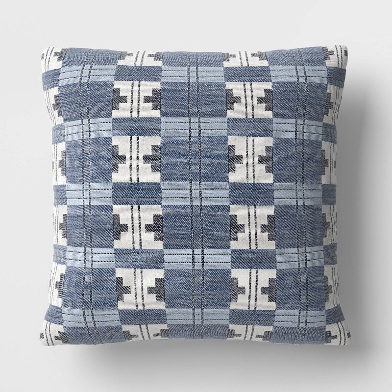 Transform your space with the soft comfort of this Square Heritage Geometric Polyester Throw Pillow from Threshold™. This decorative throw pillow features a square heritage geometric pattern to lend t…