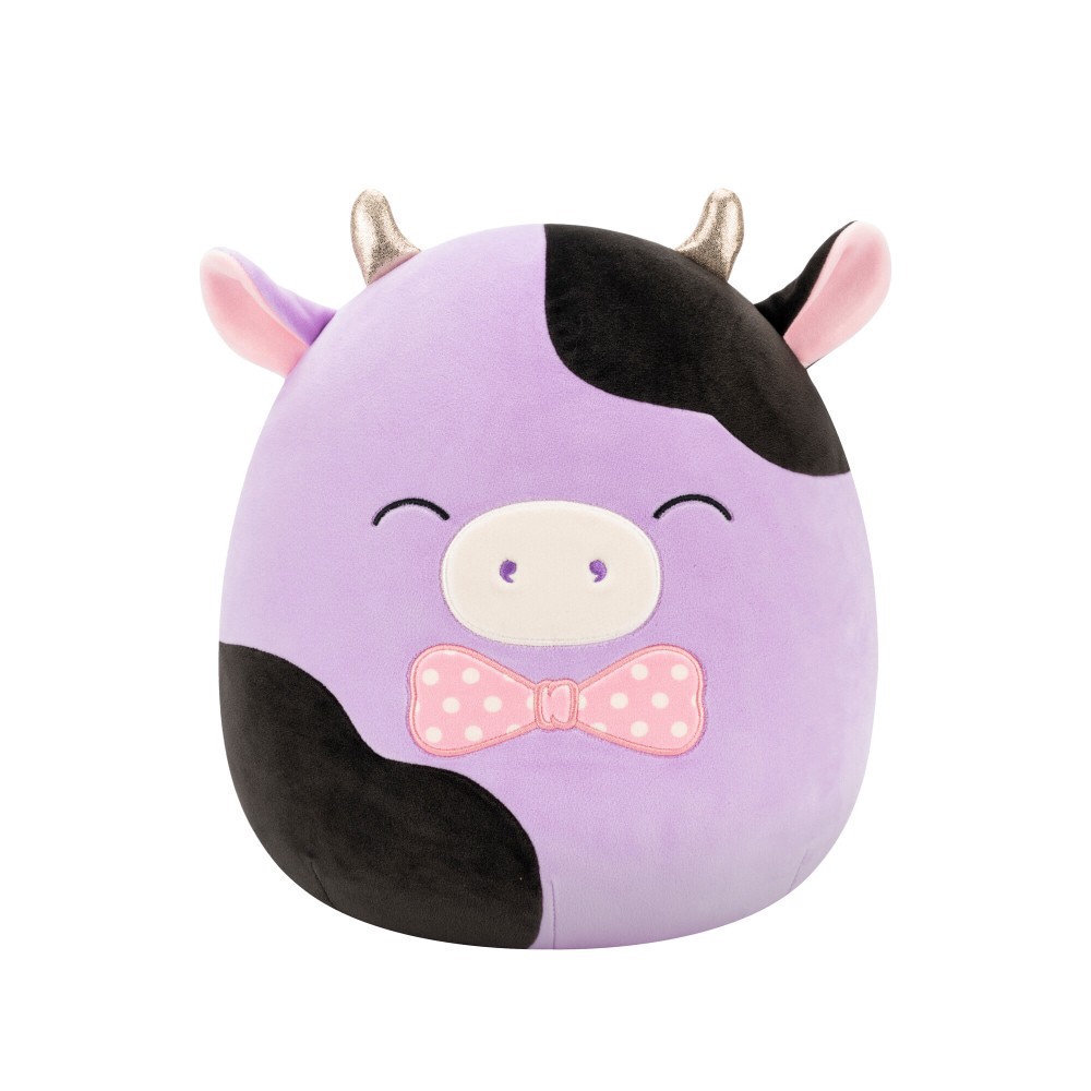 Squishmallows 12" Purple and Black Cow With Closed Eyes and Bowtie