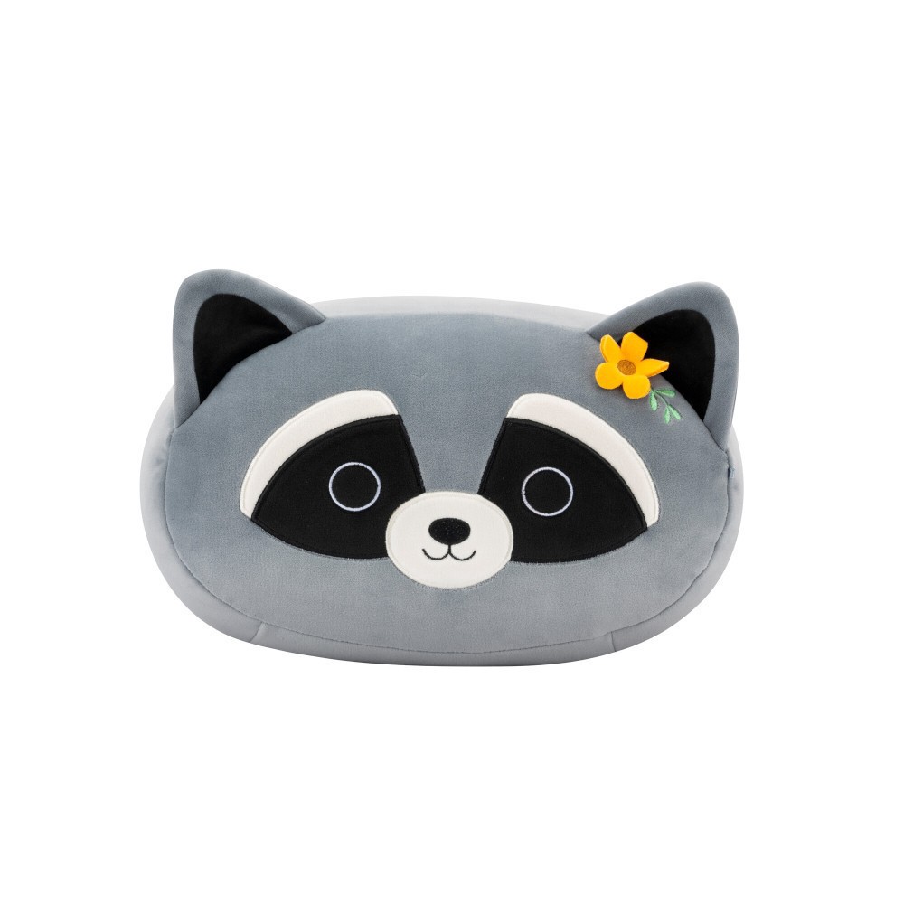 Squishmallows 12" Stackable Black and Grey Raccoon with Flower Pin