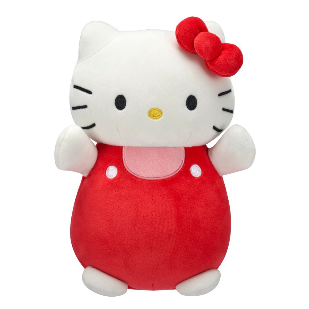 Squishmallows HugMees 10 Inch Hello Kitty Red and Pink Overalls Plush Toy