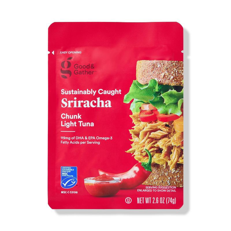 A go-to for salads, sandwiches, or a simple, wholesome snack, this Chunk Light Tuna in Water with Sriracha from Good & Gather™ is sustainably wild-caught and sourced using dolphin-safe methods. It's r…