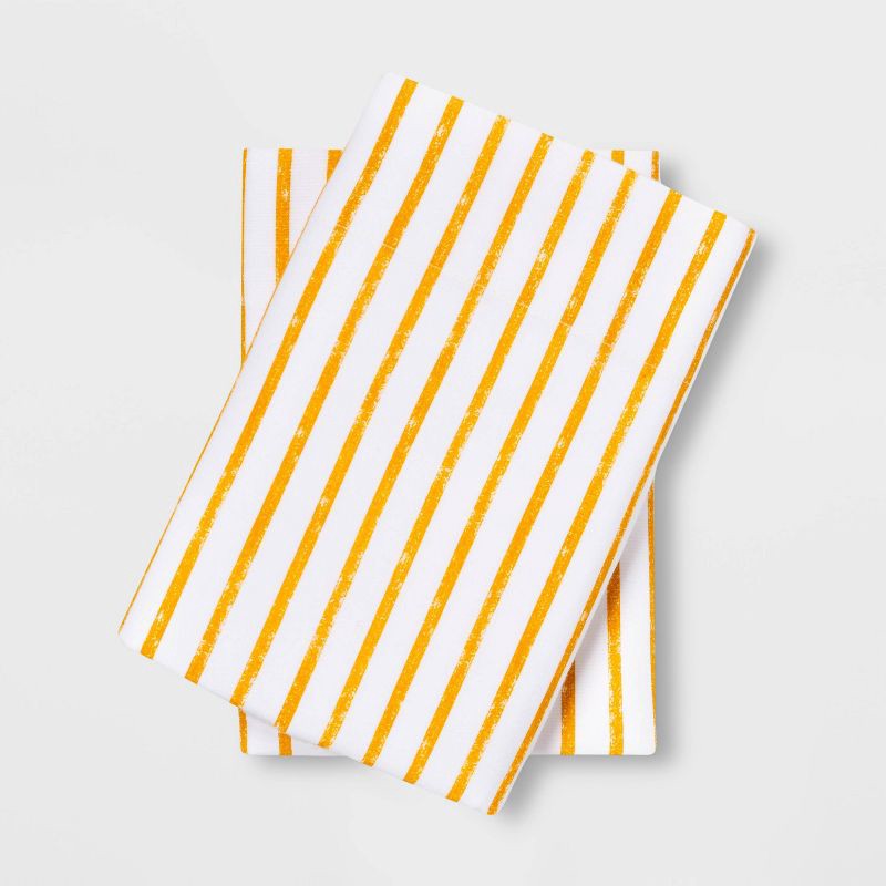Standard Easy Care Printed Pillowcase Set Gold Stripe - Room Essentials