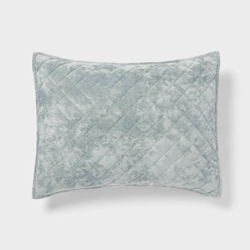 Standard Luxe Diamond Stitch Velvet Quilt Pillow Sham Light Teal Green - Threshold™: Recycled Polyester, No Flange, OEKO-TEX Certified