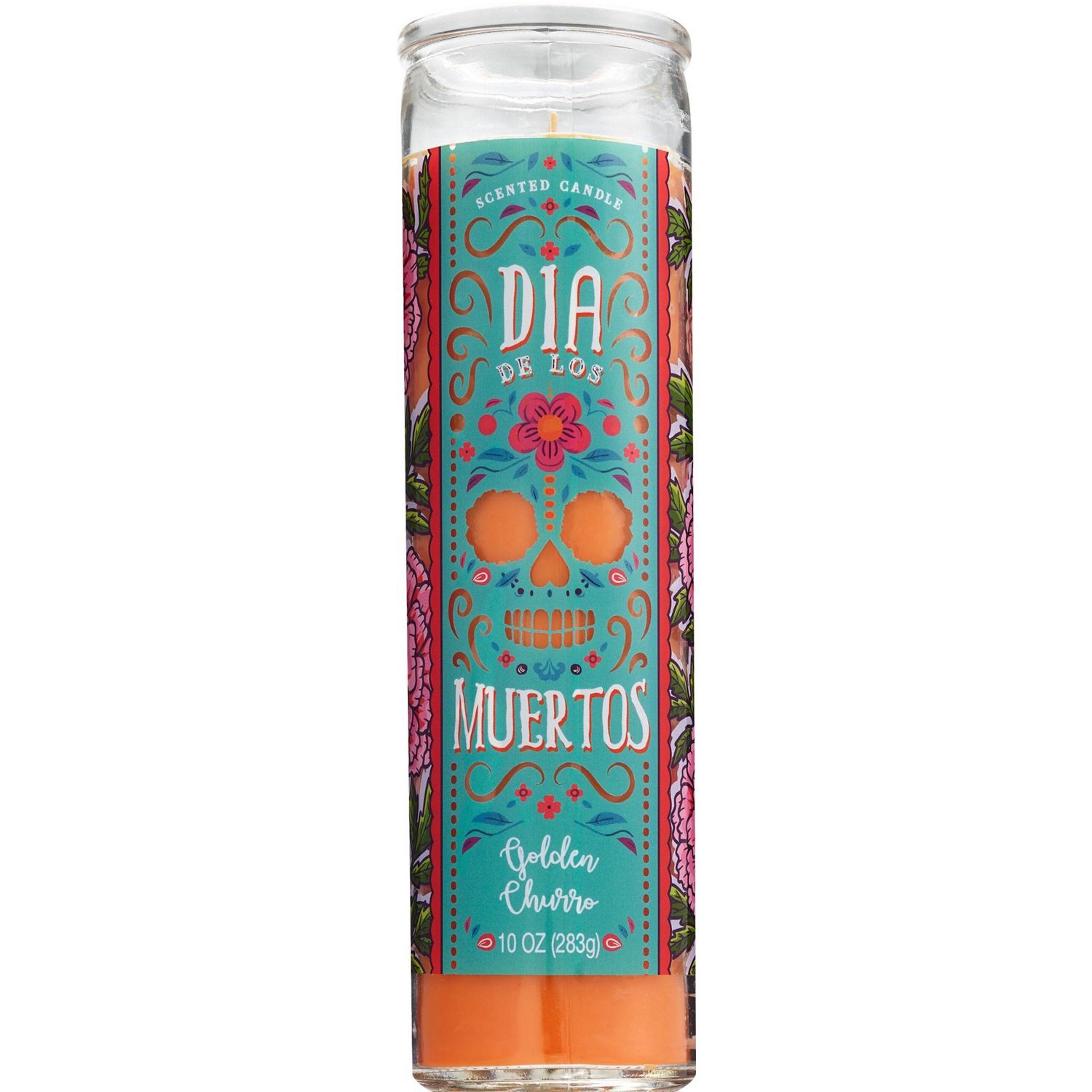 Star Candle Co. Dia De Los Muertos Pillar Candle, Golden Churro Scent, 10 Oz