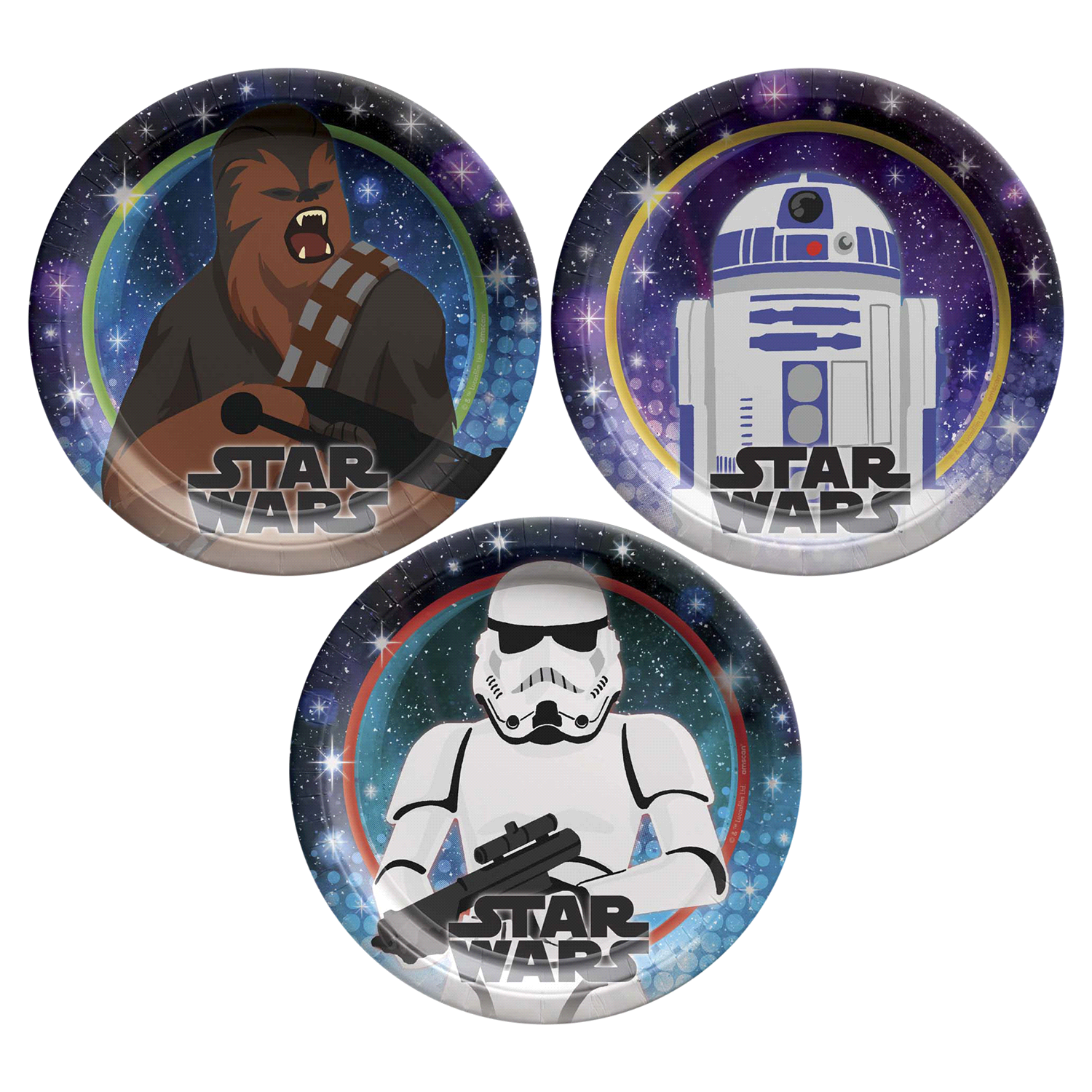 The force will be with you when you have these Star Wars plates Each pack comes with 3 designs. These are perfect for Star Wars themed parties.
