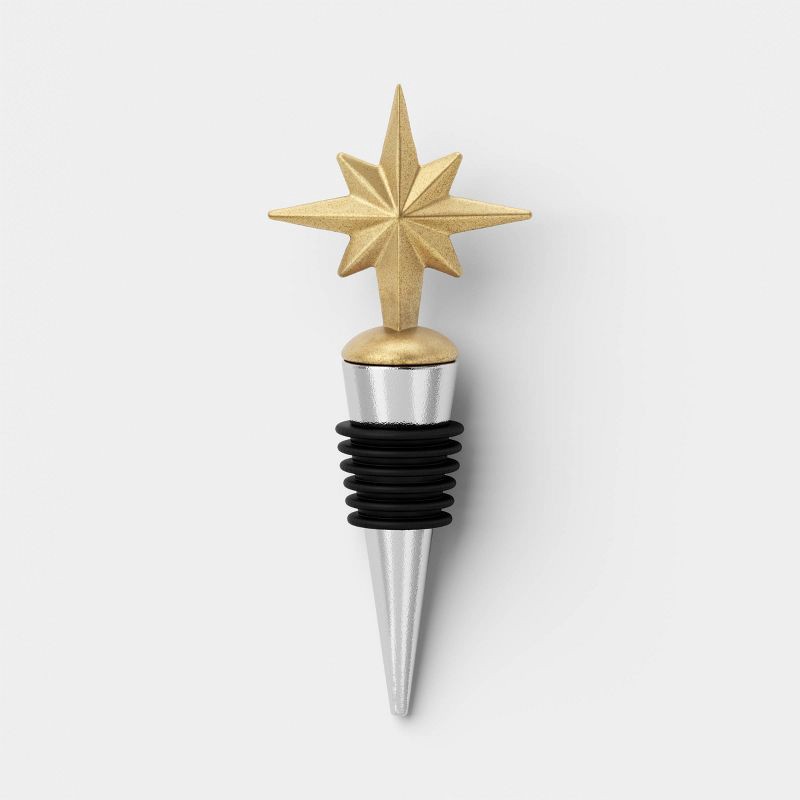 Make your wine look more appealing and keep it fresh after opening with this Star Wine Stopper from Threshold™. Made of metal, this wine stopper features an 8-pointed star in a gold finish for seasona…