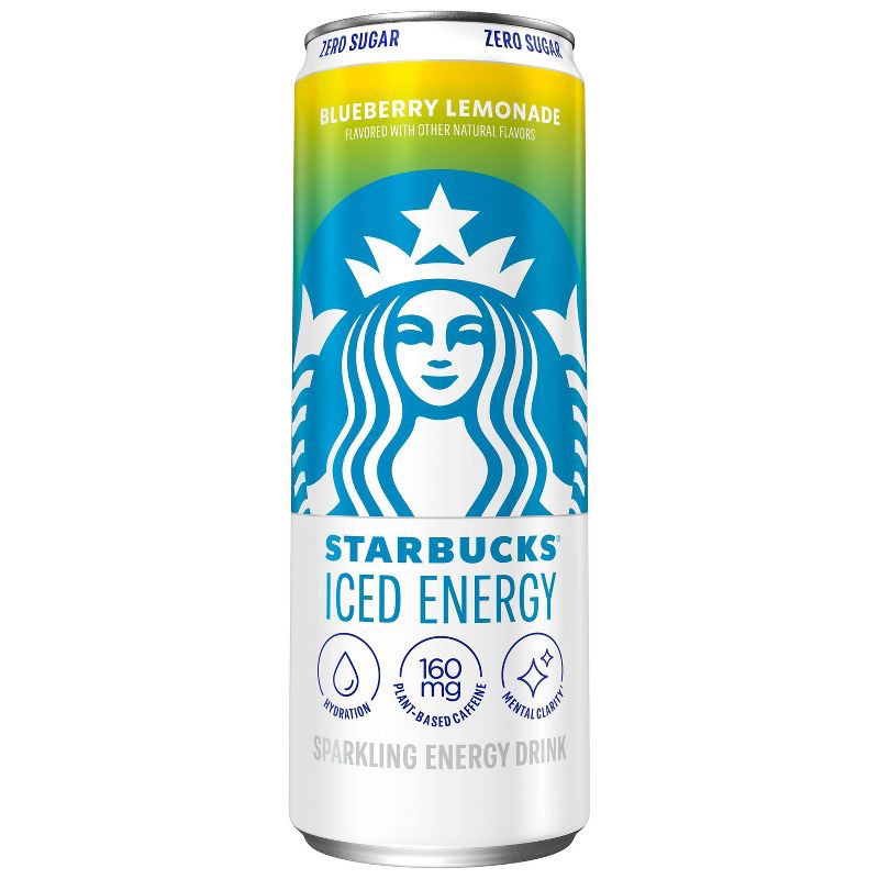 - Includes 1 (12 fl oz) can of Starbucks Iced Energy Sparkling Energy Drink, Blueberry Lemonade flavor