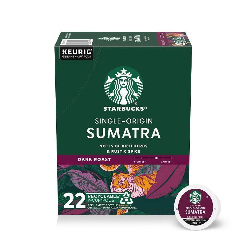 - PREMIUM COFFEE IN A K-CUP POD: Enjoy the Starbucks coffee you love at home with a box of 22 Starbucks Single-Origin Sumatra Dark Roast K-Cup pods, designed for Keurig coffee makers
