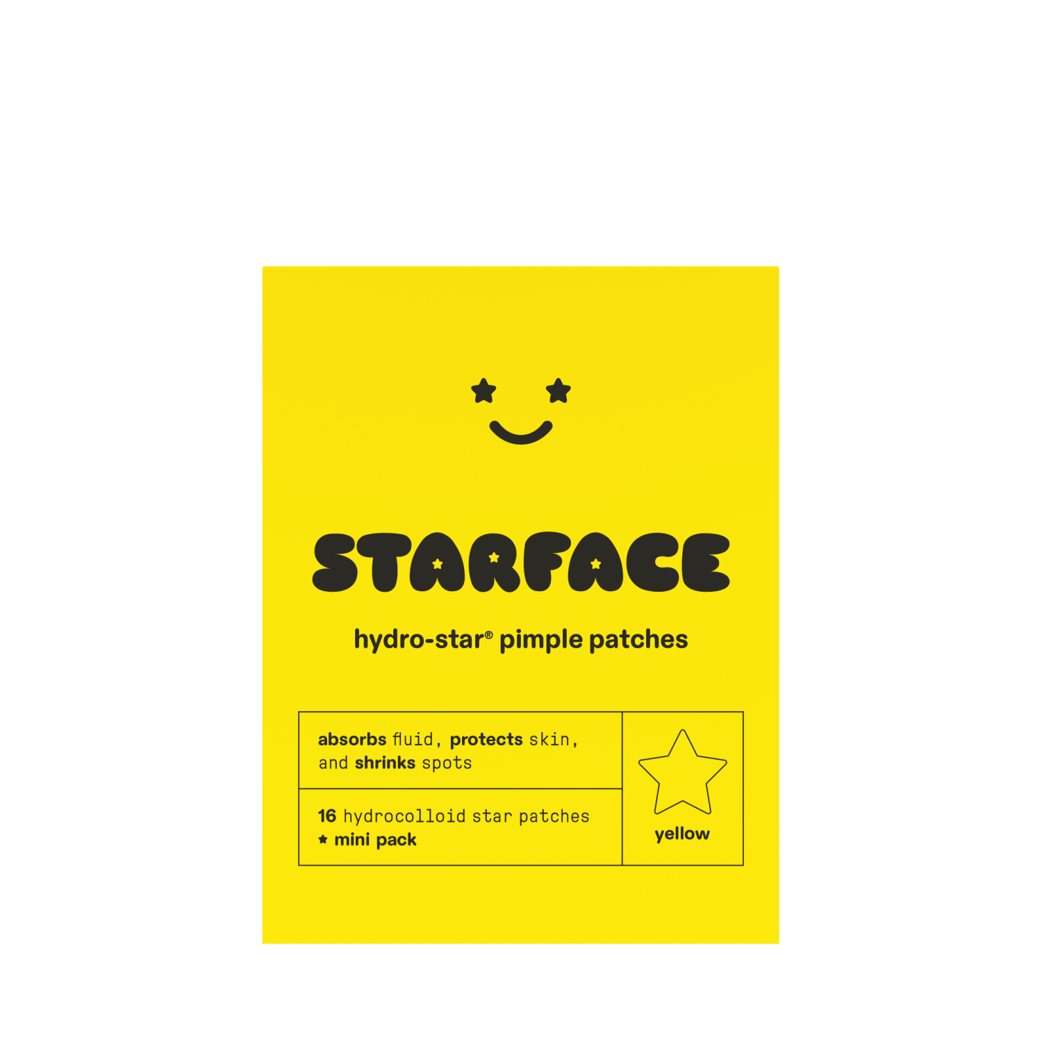 Express yourself and feel cute with Starface Hydro-Star Pimple Patches Mini Pack: a set of 16 hydrocolloid pimple patches in yellow that help absorb fluid, reduce redness, and shrink spots.