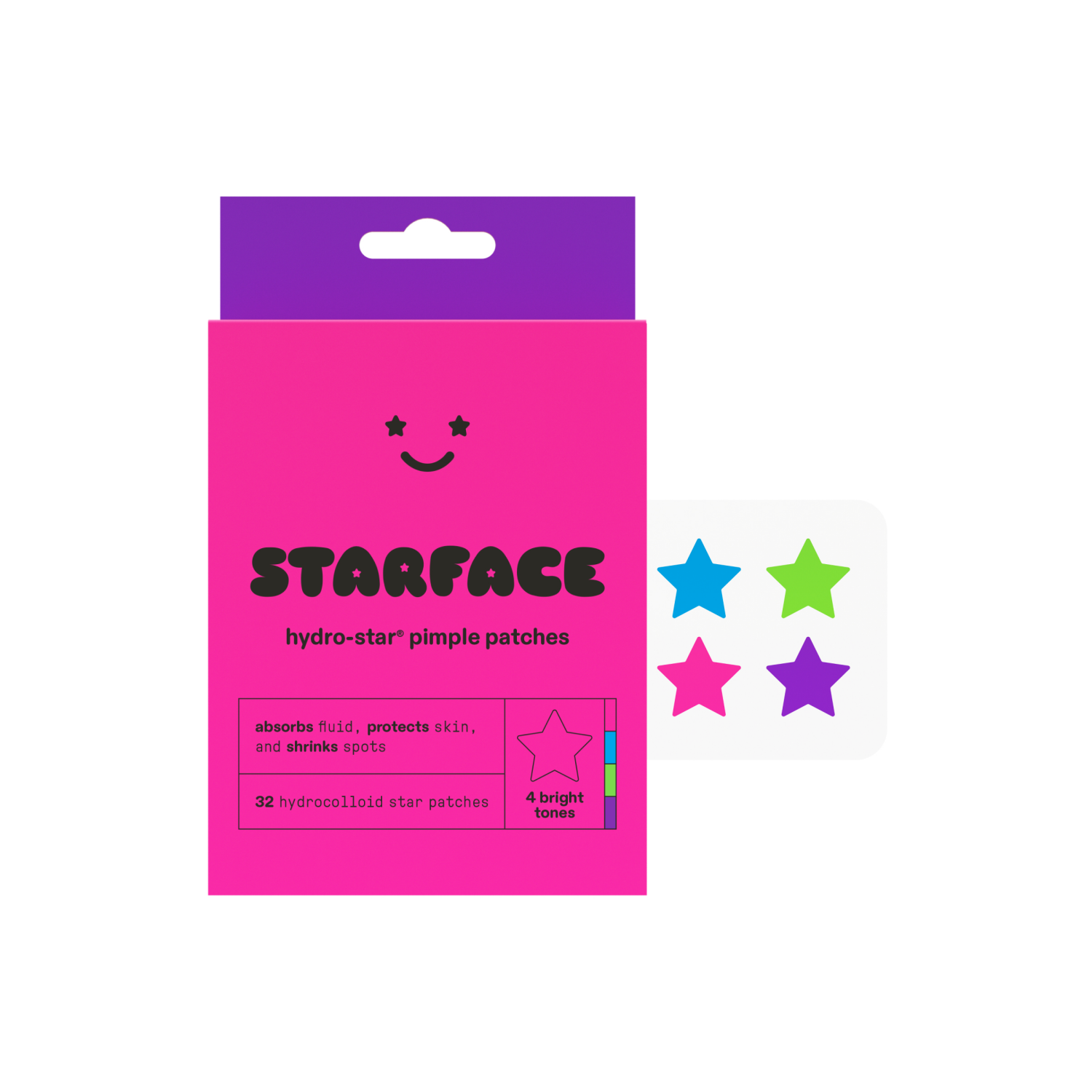A pack of 32 Hydro-Stars in four fun new colorways: Aqua, Lime, Azalea, and Violet. Hydrocolloid is clinically proven to help absorb fluid and reduce inflammation to shrink pimples overnight. Perfectl…