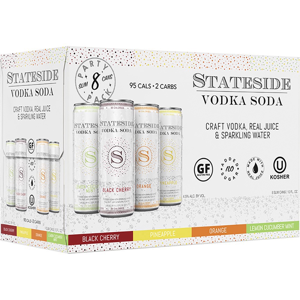 Pennsylvania- Stateside Vodka Soda is made with Craft Vodka, Real Juice & Sparkling Water. It has 95 calories, only 2g Carbs, no sugar added and is gluten free. With 4 great flavors, including Black C…
