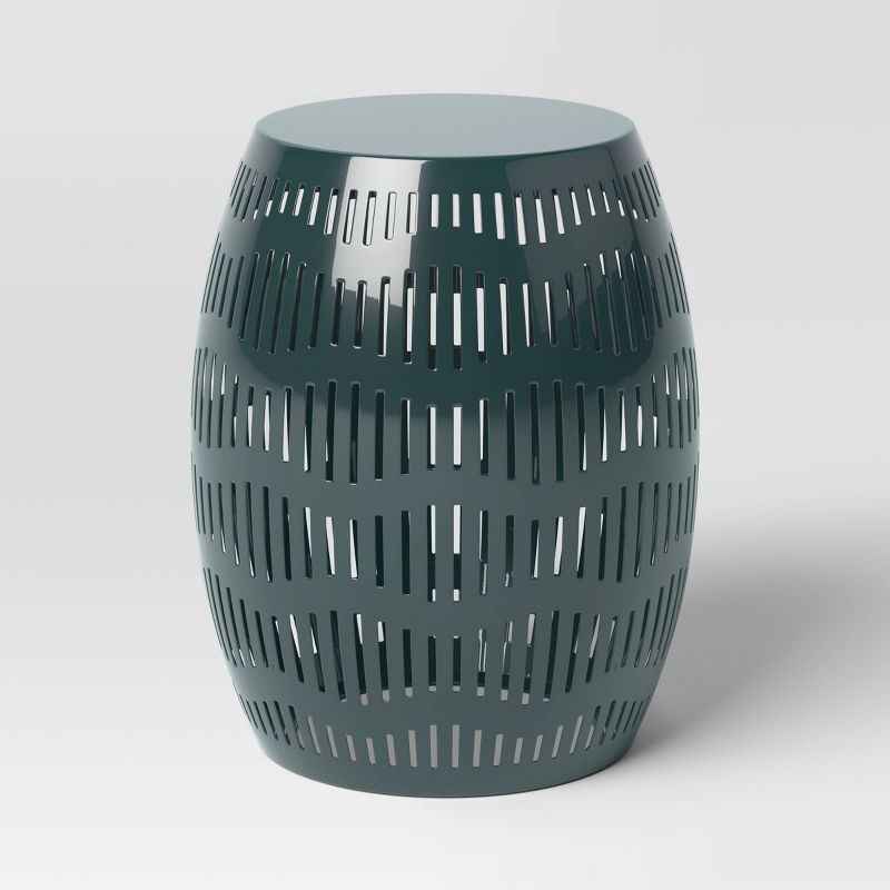 Lend an eye-catching finish to your garden decor or outdoor space with this Metal Cutout Accent Table from Room Essentials™. Made from metal, this accent table features a barrel-like shape with a flat…