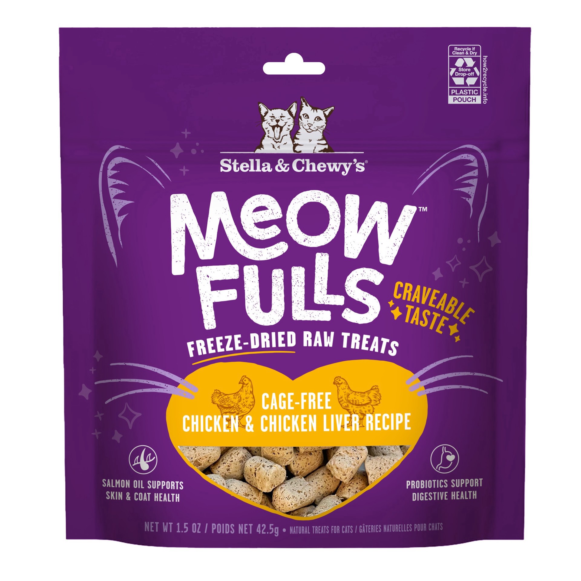 Stella & Chewy's MeowfullsTM Freeze Dried Cat Treats Chicken & Chicken Liver Recipe pair tasty proteins with purposeful ingredients, creating a craveable, healthy treat your cat will meow for! With ad…