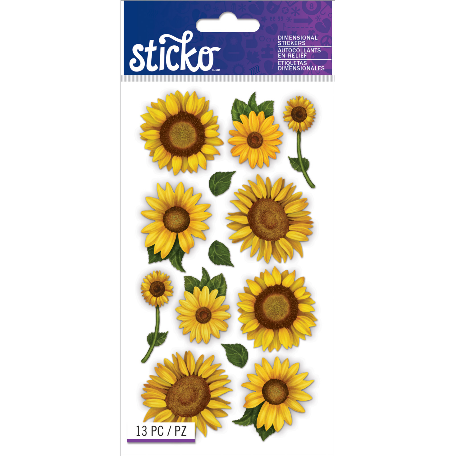 Sticko Stickers are great for collecting, invitations, stationery, gift wrapping, parties, scrapbooking, and much more. This sticker set includes dimensional flowers. Designs are sunflowers and leaves…