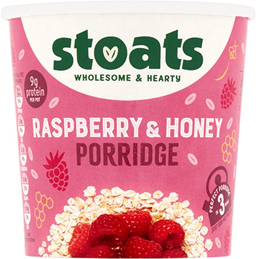 Inspired by the legendary Cranachan dessert, this pot is positively packed with premium Stoats oats! Strike gold with every hearty mouthful of our sweet mix of runny honey and tangy raspberries. Delic…