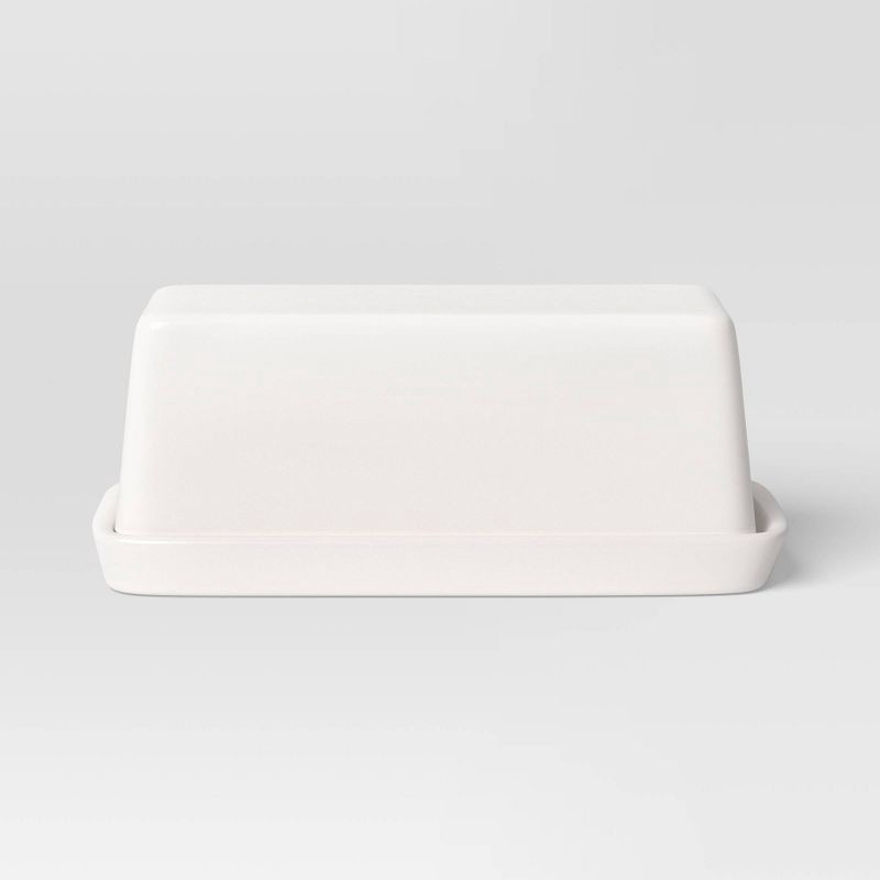 Keep your kitchen maintained in style with the Stoneware Butter Dish from Threshold™. This two-piece butter dish includes a rectangular tray and a lid for convenient storing and serving. Made of stone…