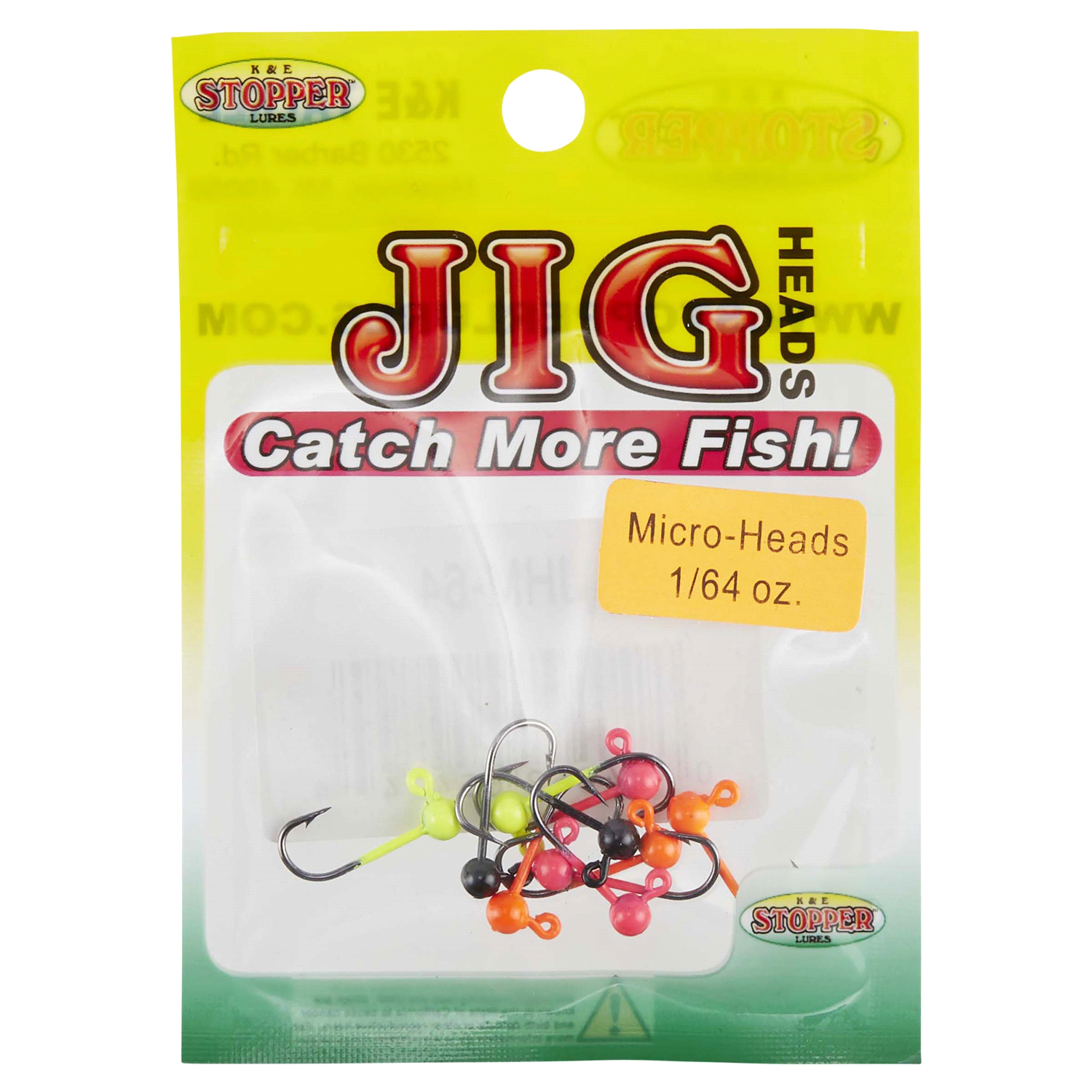 The Stopper Lures 1/64th oz Jig Heads are a great choice for catching Crappie, Panfish and Perch. These Jigs are great for rigging under a float. The assorted painted jig heads are in proven fish catc…