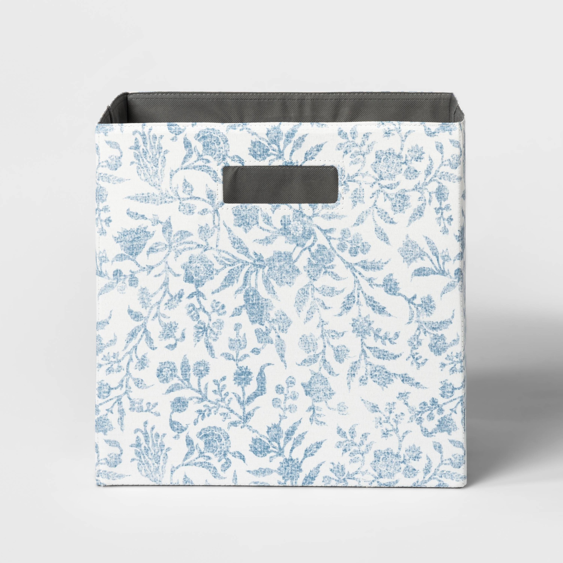 13" Fabric Cube Storage Bin Soft Blue Floral Pattern - Threshold