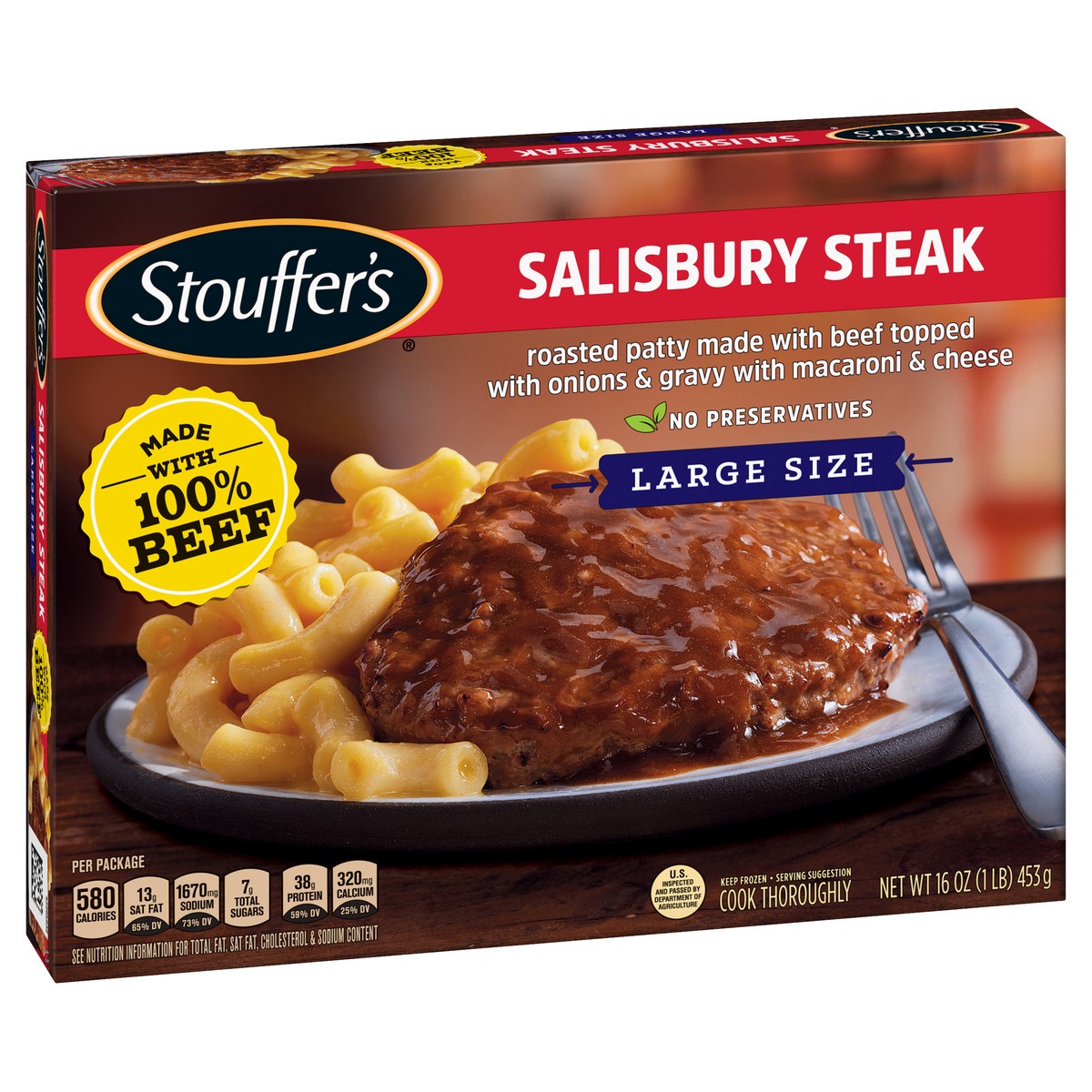 Stouffer's Large Size Salisbury Steak Frozen Meal combines quality ingredients and delicious flavor into one quick meal. This Stouffer's frozen meal contains a roasted patty made with beef topped with…