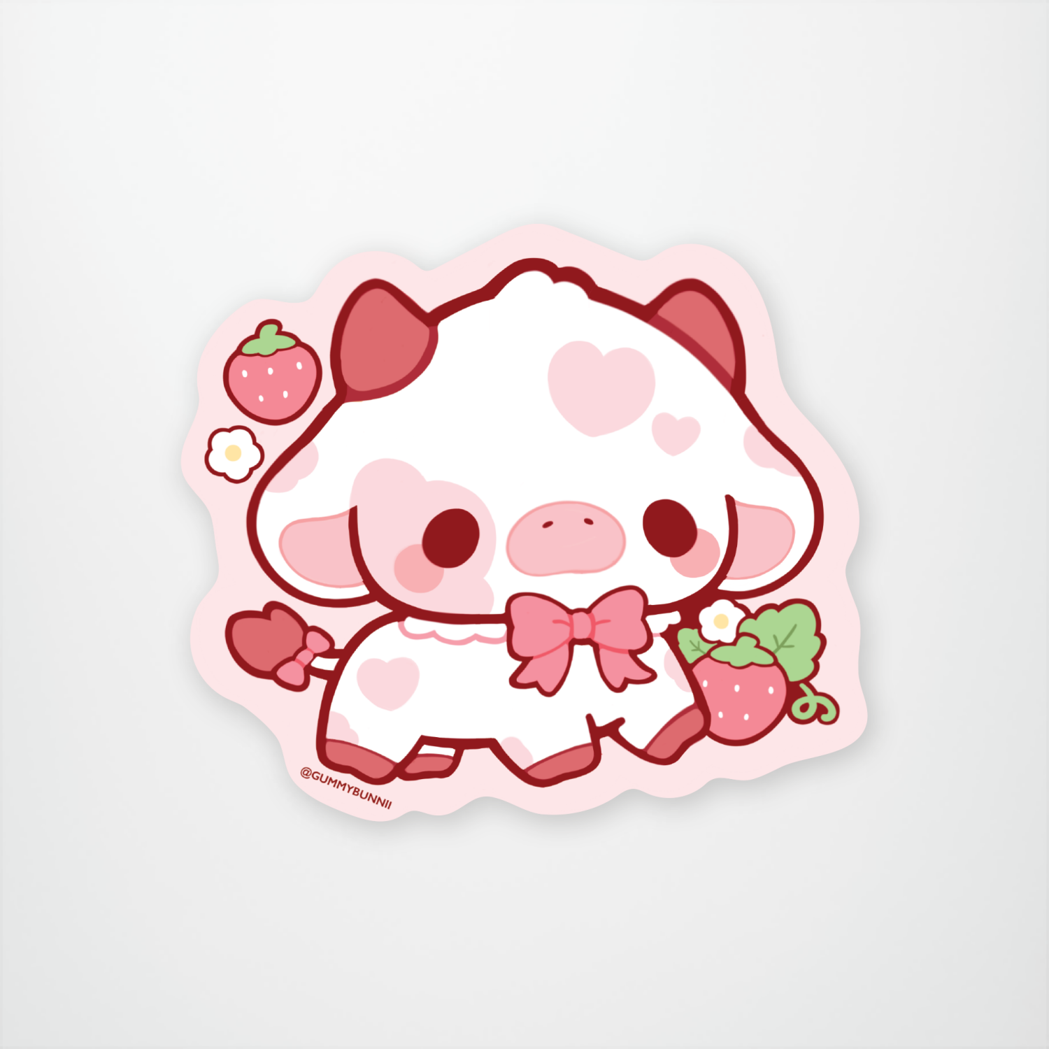 slide 1 of 1, Strawberry Cow Sticker, 1 ct