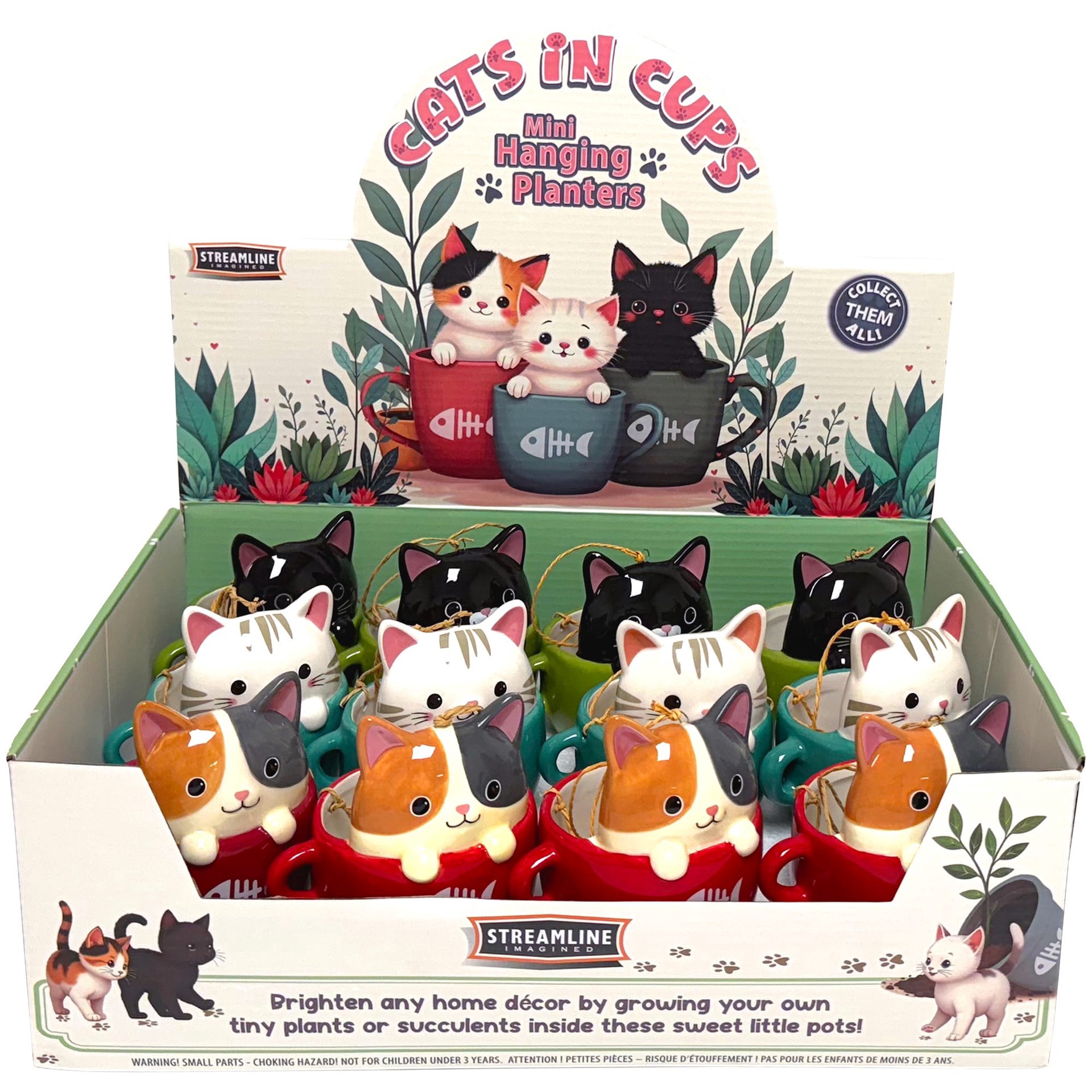 Streamline Imagined Cats in Cups Mini Hanging Planters