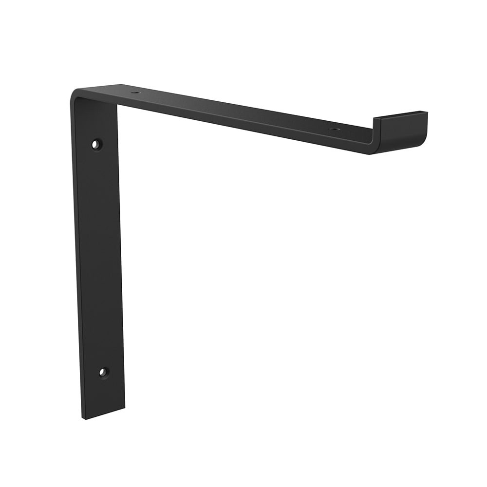 This L-shape shelf bracket measures 10.16-in L x 9.17-in W x 1.46-in D and features a durable black powder coat finish. Holds up to 70 lb per pair when properly installed every 16 inches apart in wood…