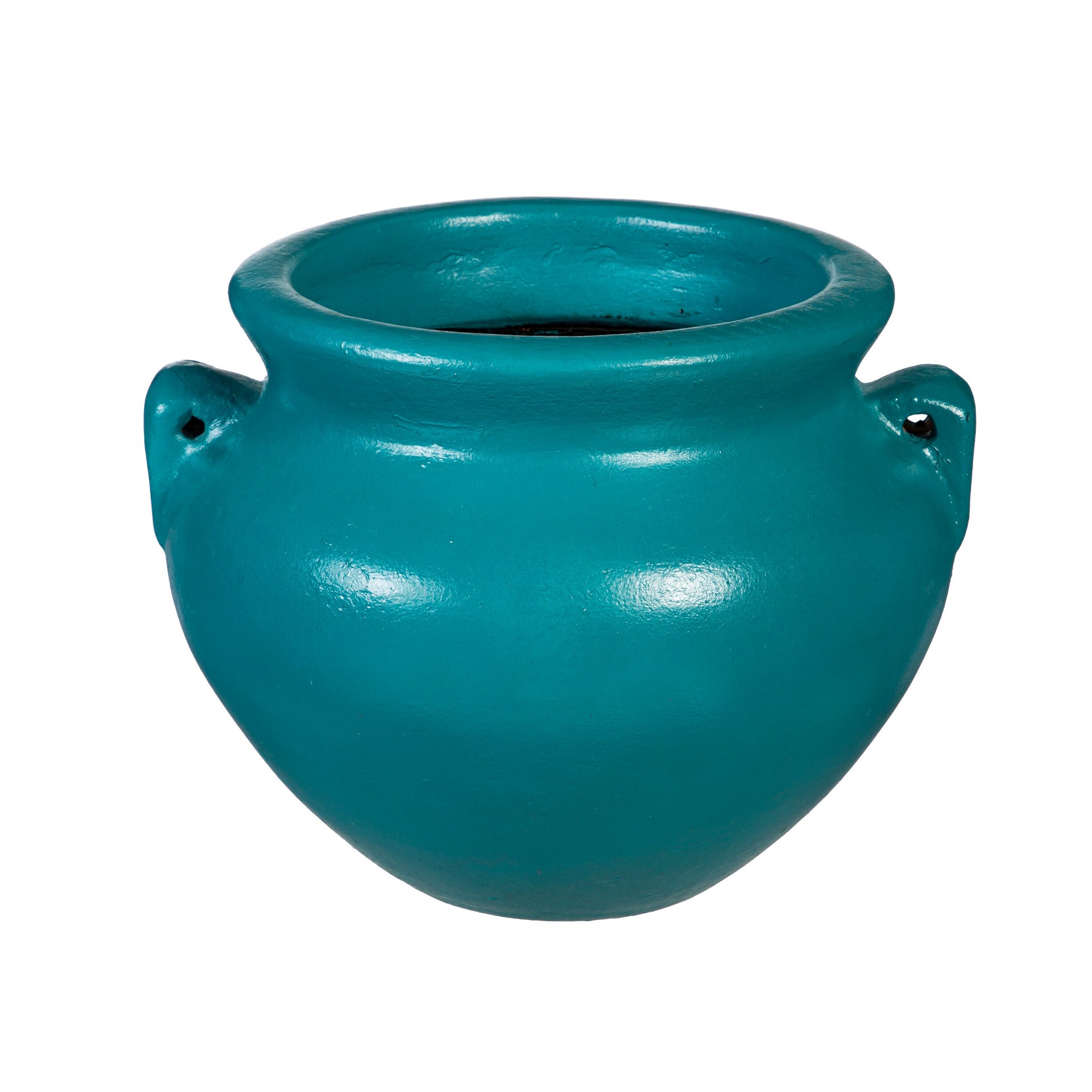 This handmade Mexican Clay Chata with handles is the perfect planter for all your potting needs. Hand Painted with a nice light blue finish and includes drainage hole at the bottom. Can be used for po…