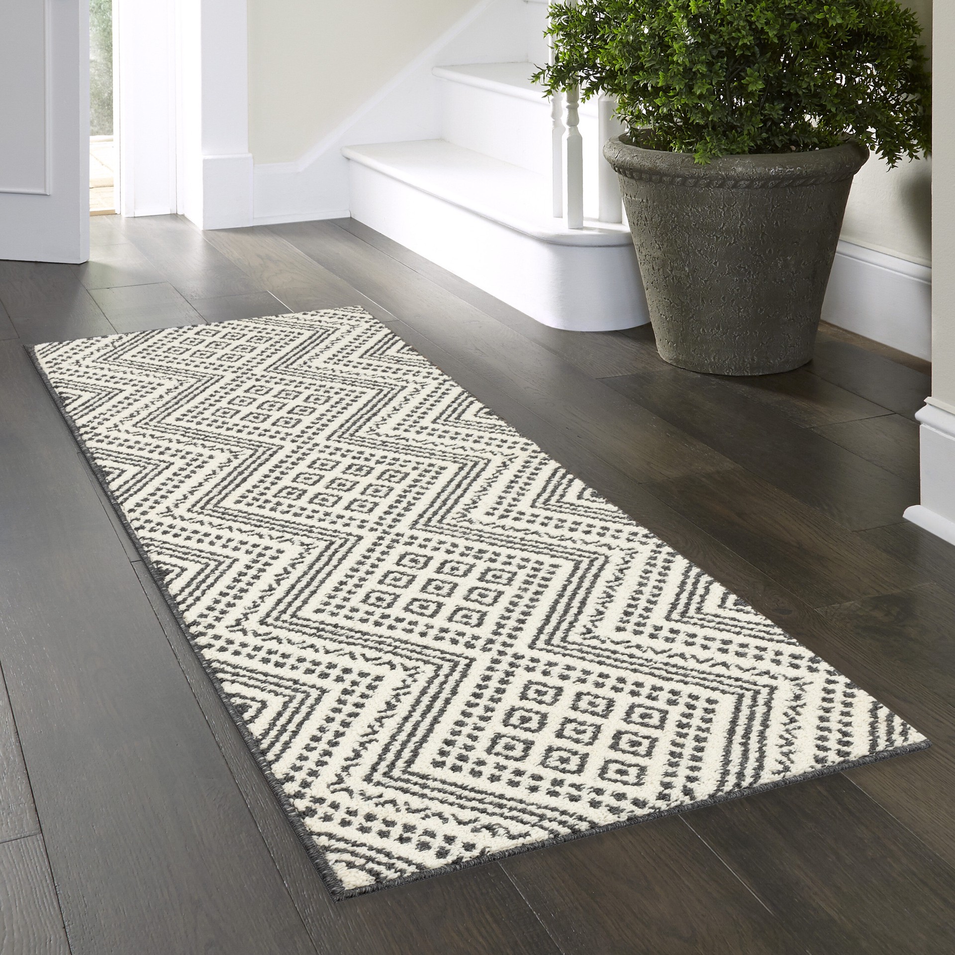 Style Selections 2 x 6 (ft) Tufted Polyester Grey Rectangular Indoor Geometric Mid-Century Modern Machine washable Runner rug