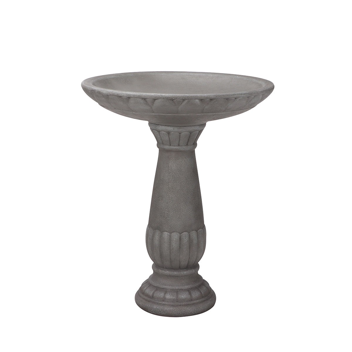 Weighted for stability, yet easy to move.. This classic grey stone look birdbath can be used in any garden setting for formal to casual.. Traditional eyecatching shape with hand painted finish..