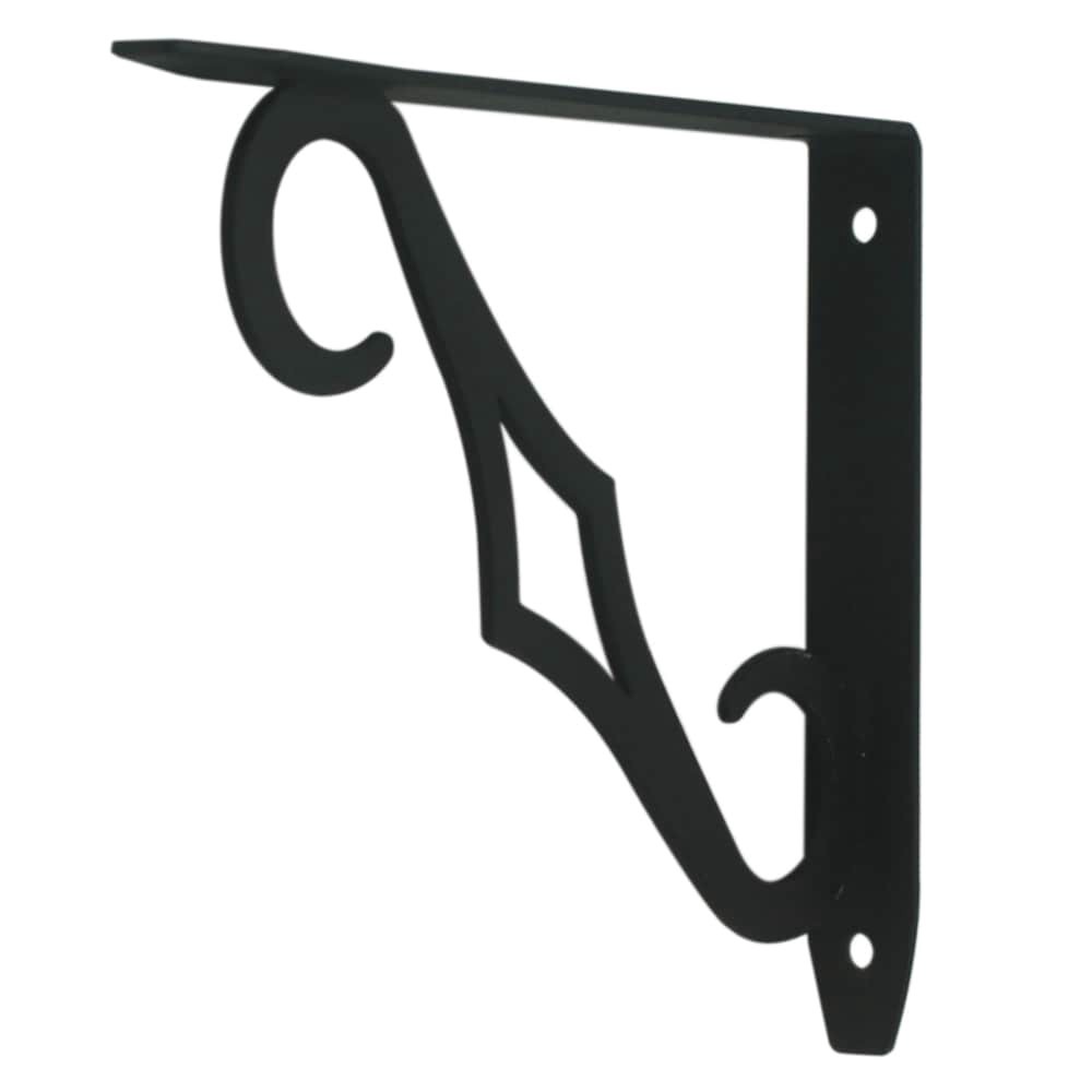 This vintage style shelf bracket measures 6.54-in L x 0.79-in W x 5.39-in D, durable black powder coat finish. Holds up to 80 lb per pair when properly installed every 16 inches apart in wood studs. I…