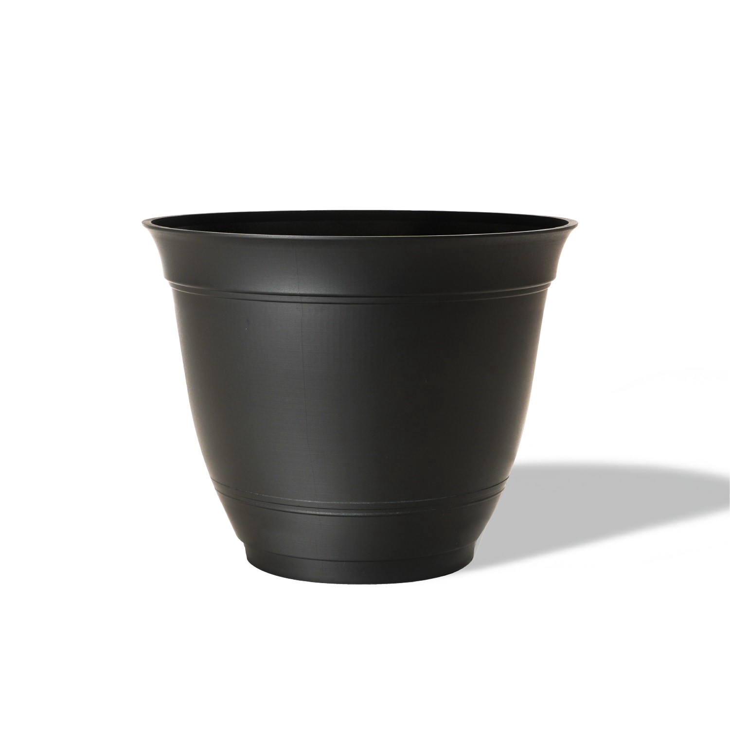 Style Selections Round 19.21-in W x 19.21-in L Black Recycled plastic Indoor/Outdoor Planter