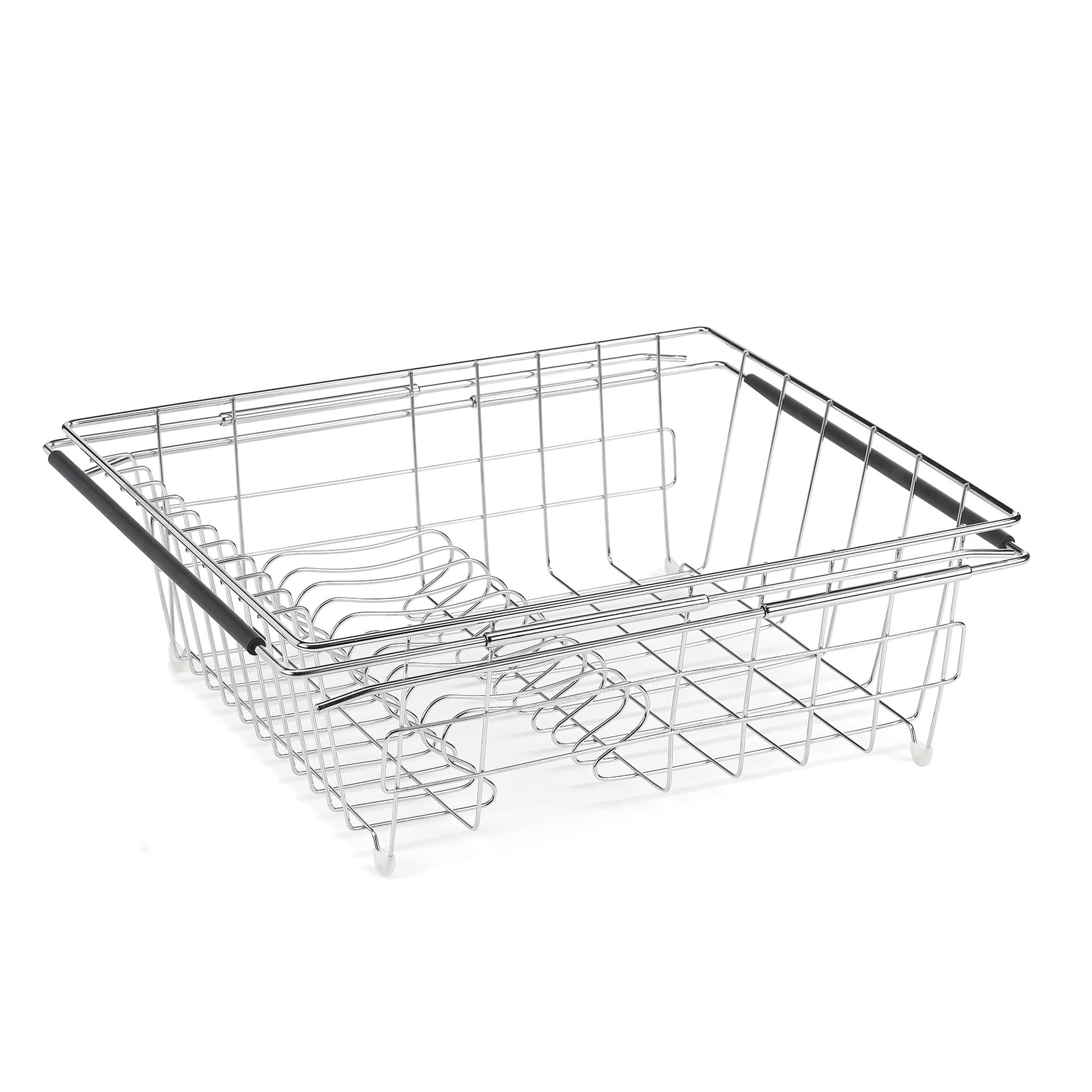 In-sink or over-sink design drains directly into the basin. Heavy duty stainless steel construction offers solid, stable performance. Holds up to 7 plates with room for glasses and cutlery. Arms exten…