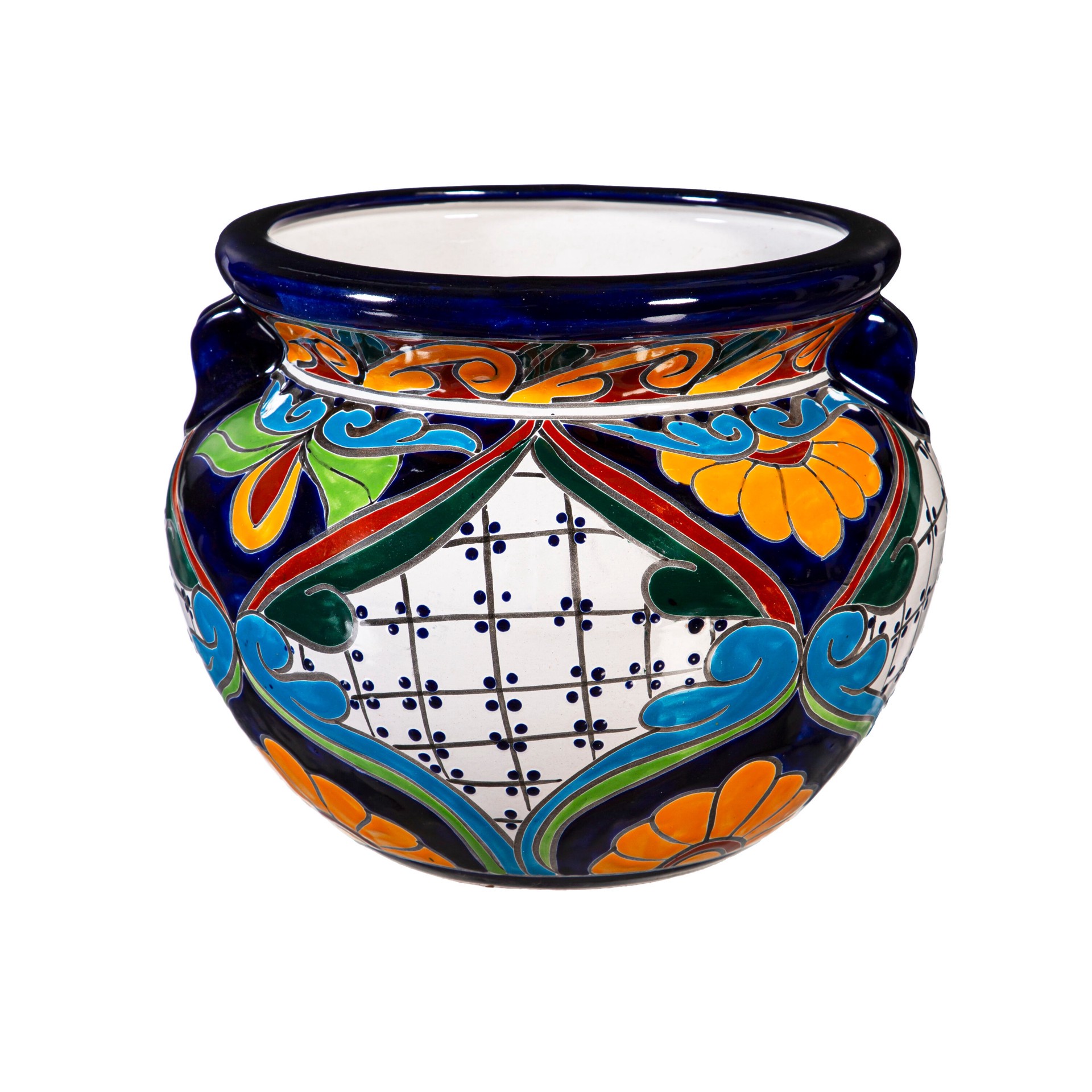 This colorful Talavera ceramic vase is the perfect planter for indoor or outdoors. Each planter is a unique work of art with a dynamic colorful design and high quality finish. Manufactured at a histor…