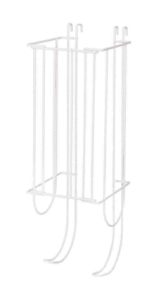 Holder is easy to install ; hangs over the toilet tank. Keeps 4 rolls of extra toilet tissue handy and easy to reach. Has a white plastic coating that resists rusting and won't scratch surfaces. Ideal…