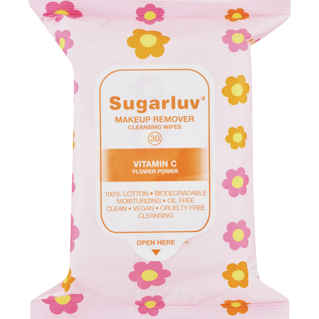 Sugarluv's makeup removing, cleansing wipes gently remove dirt, oil, sweat and makeup. 100% Cotton, Biodegradable and made with natural ingredients Hydrating, Vegan, and Cruelty Free Moisturizing & Oi…