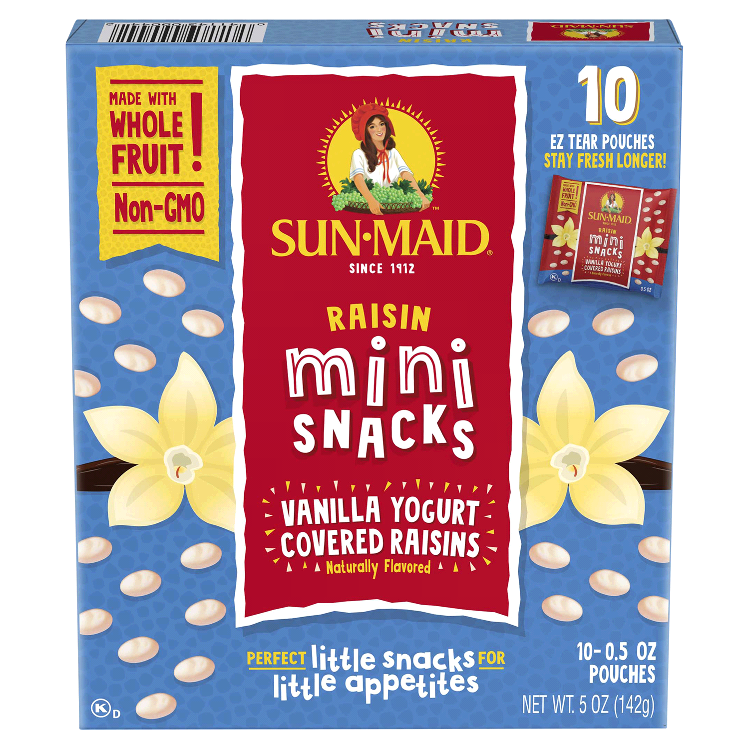 Sun-Maid Mini Snacks Vanilla Yogurt Covered Raisins - Kids crave, moms approve, made with whole fruit. Sun-Maid’s timeless and trusted raisins wrapped in a decadent blanket of vanilla yogurt. A better…
