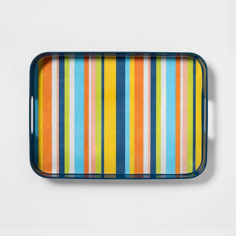18" x 13" Bamboo and Melamine Striped Serving Tray - Sun Squad