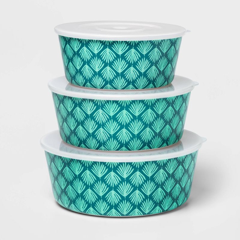 3pc Bamboo and Melamine Palm Leaf Food Storage Container Set - Sun Squad
