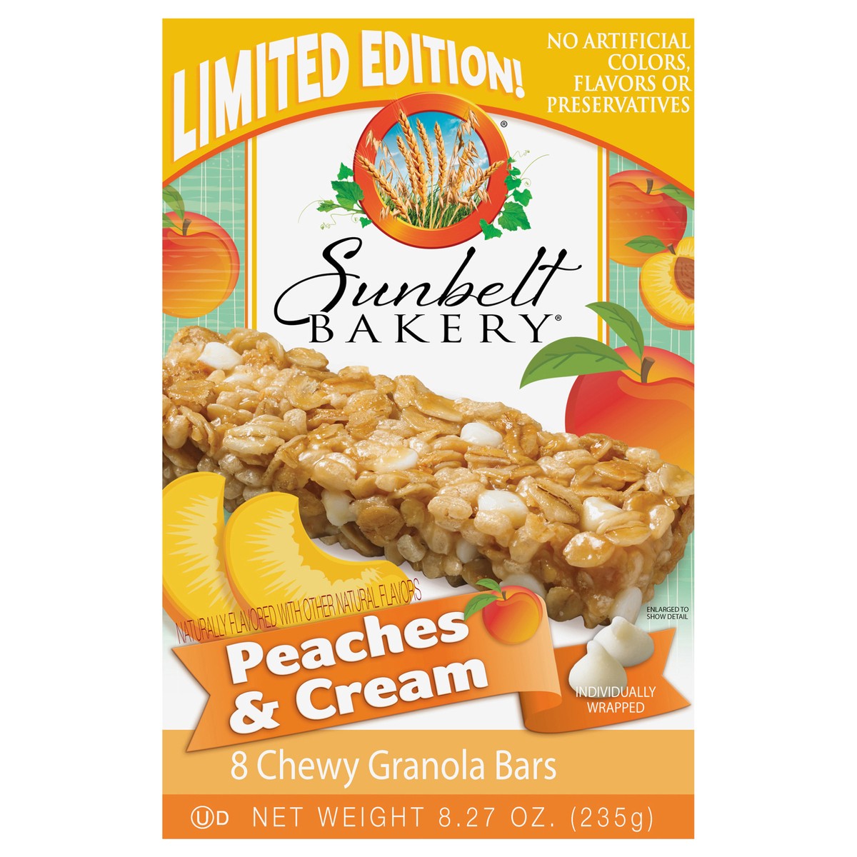 Love the delicious taste of a sweet peach? Sunbelt Bakery Peaches and Cream Chewy Granola Bars have the familiar bakery-fresh taste you know and love now in a brand new seasonal flavor! Find satisfact…