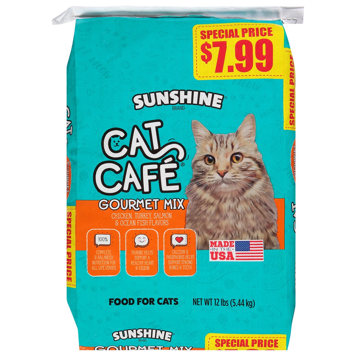 Calorie Content (Calculated): 3,385 kcal/kg (ME) 308 kcal/cup (ME) Nutrition Guarantee: Cat Cafe Gourmet Mix Cat Food is formulated to meet the nutritional levels established by the AAFCO cat food nut…