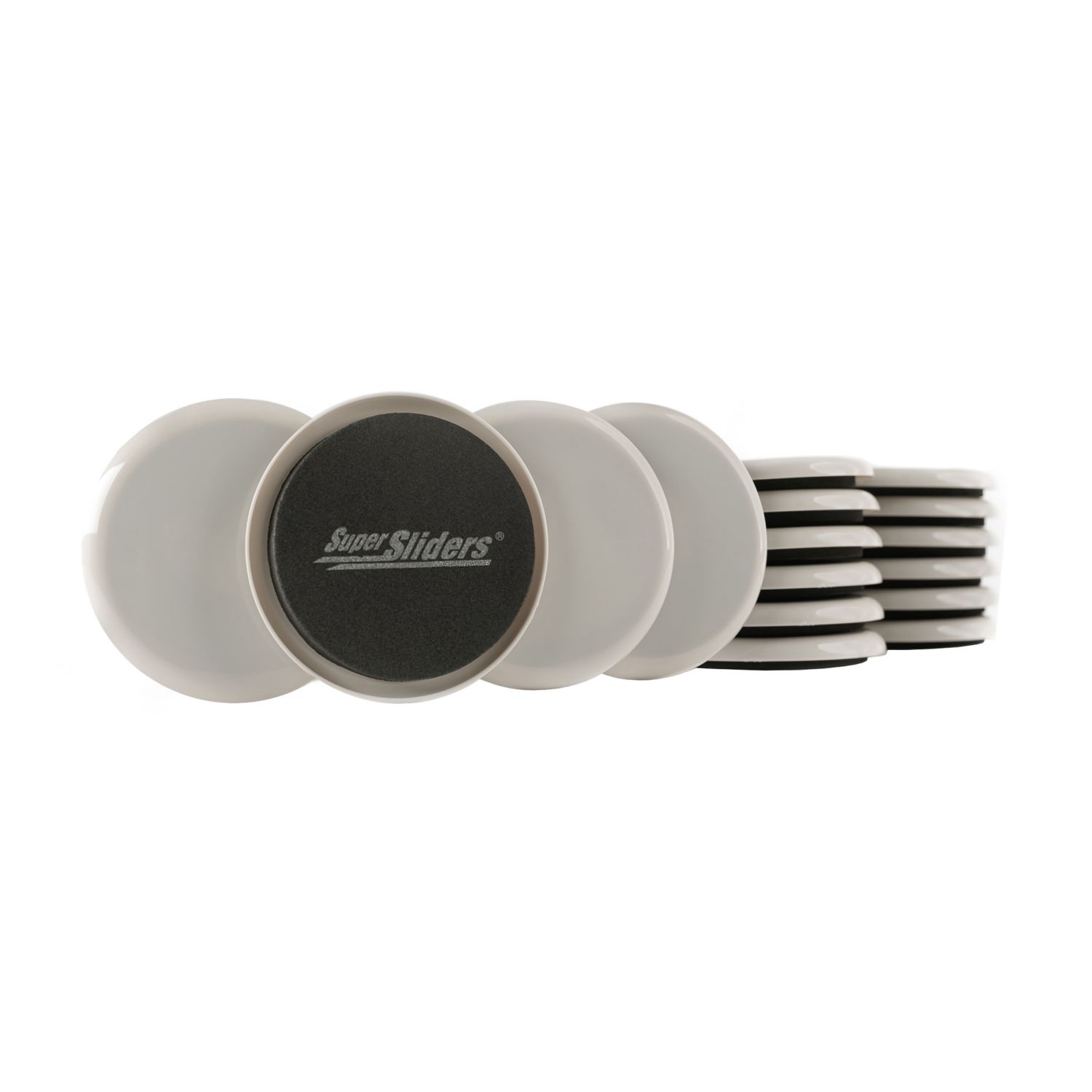 Super Sliders reusable round furniture sliders for carpeted surfaces feature a smooth, hard plastic with a layer of EVA foam to cushion and distribute the weight evenly across the slider and grip the …