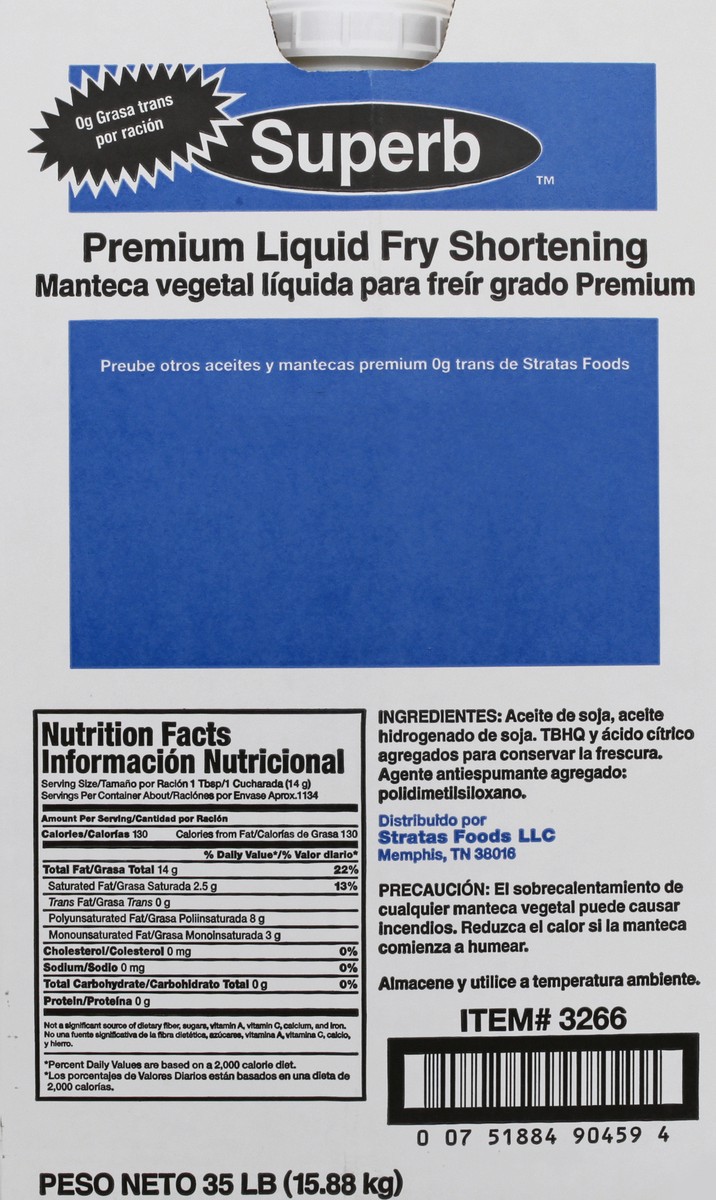 0 g trans fat per serving. Try Stratas Foods other 0g. trans fat premium shortenings and oils.