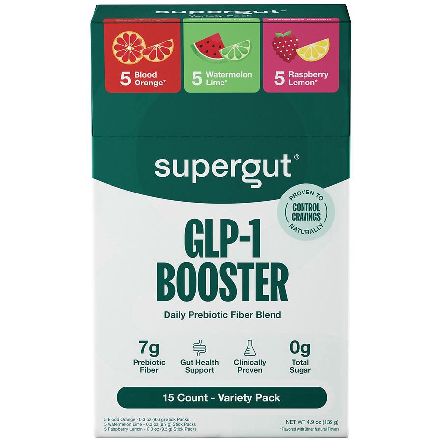 Supergut Flavored GLP-1 Booster, Premium Prebiotic Fiber Blend for Craving Control, Gut Health and Digestive Support, Plant-Based, Sugar-Free, 7g Fiber (15 Servings). Made in United States of America