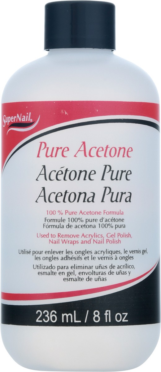 100% pure acetone formula. Used to remove acrylics, gel polish. nail wraps and nail polish.