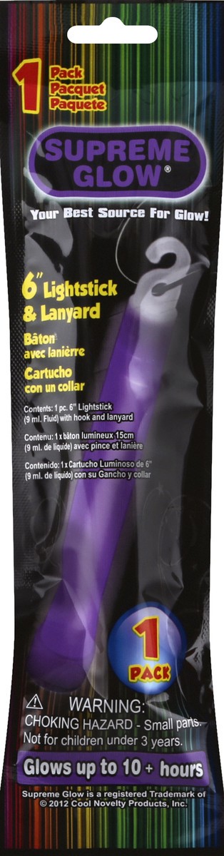 Your best source for glow! Glows up to 10+ hours. Contents: 1 pc. 6 inches lightstick (9 ml fluid) with hook and lanyard. CE listed. Meets USA restrictions on Lead & Phthalate content. For questions o…