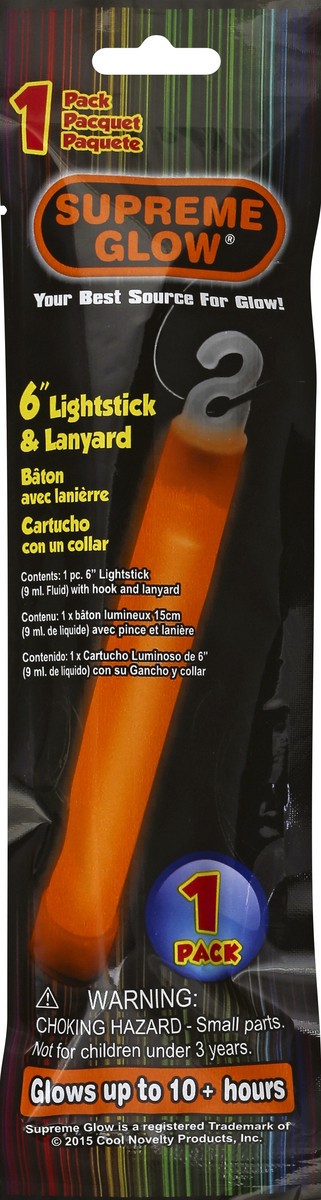 Contents: 1 pc 6 inch lightstick (9 ml fluid) with hook and lanyard. Your best source for glow! Glows up to 10+ hours. Non-toxic. For questions on this or other products please call: 1-800-441-7347. C…