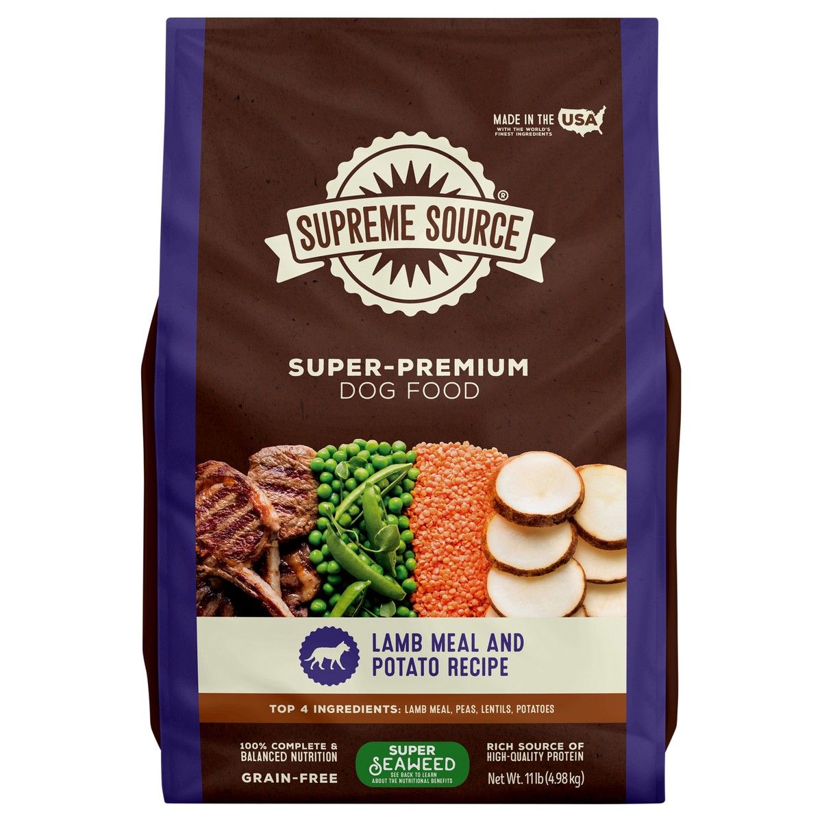 Calorie Content (Calculated) ME: 3,211 kcal/kg, 377 kcal/cup. Supreme Source lamb meal and potato recipe dog food is formulated to meet the nutritional levels established by the AAFCO Dog Food Nutrien…