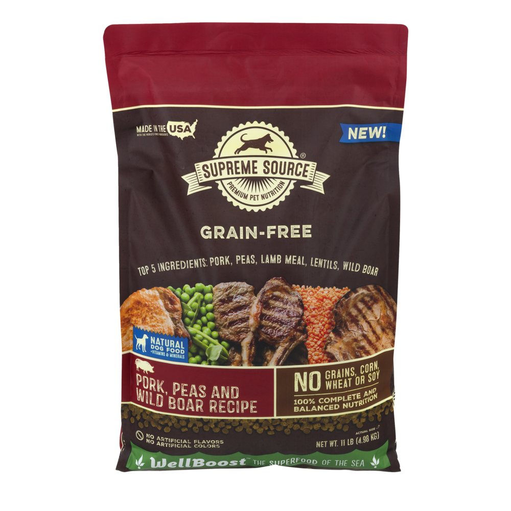 Pork, Chicken Meal, Peas, Chickpeas, Canola Meal, Pea Starch, Suncured Alfalfa Meal, Dried Plain Beet Pulp, Wild Boar, Chicken Fat (Preserved with Mixed Tocopherols), Lamb Meal, Dried Tomato Pomace, F…