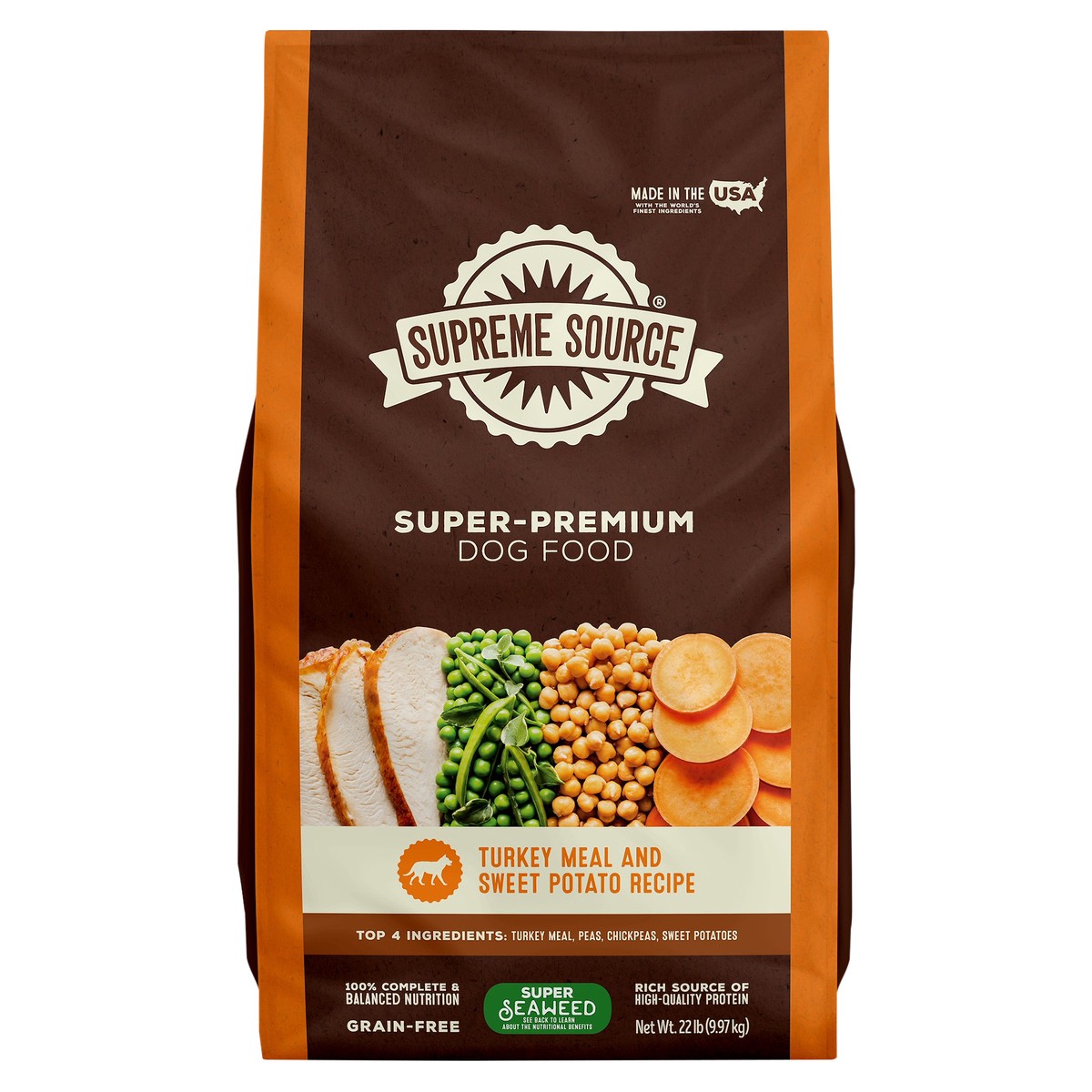 Calculated Calorie Content: 3,334 kcal/kg, 347 kcal/cup (ME). Supreme Source Turkey Meal and Sweet Potato Recipe Dog Food is formulated to meet the nutritional levels established by the AAFCO dog food…