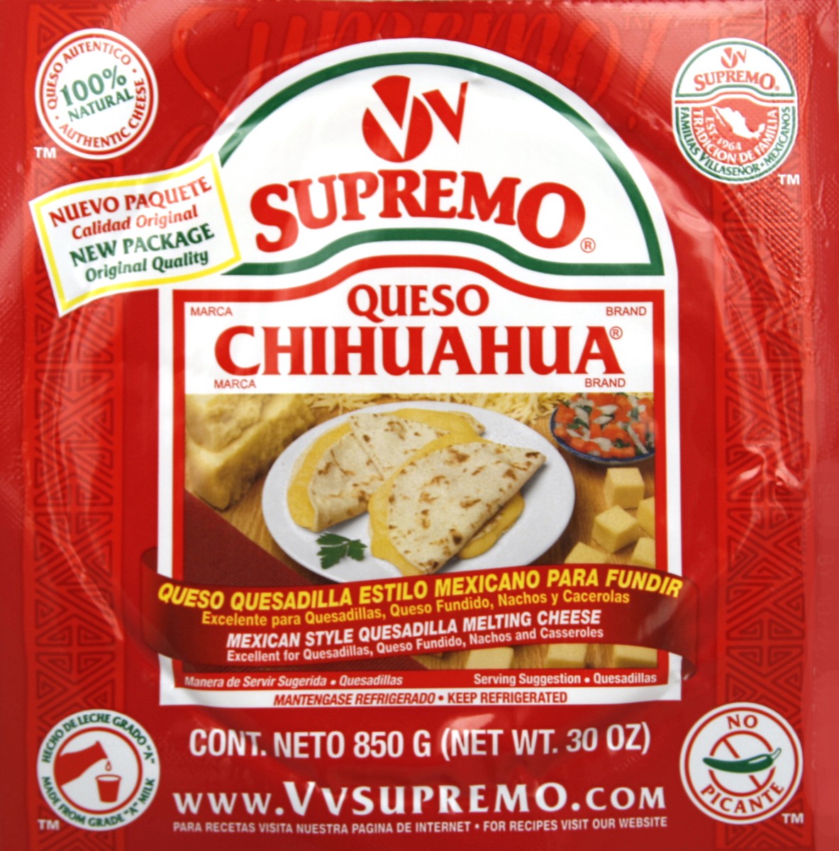 Excellent for quesadillas, queso fundido, nachos and casseroles. 100% natural, authentic cheese. 100% natural. Est. 1964. Made from grade A milk. Made in the USA.